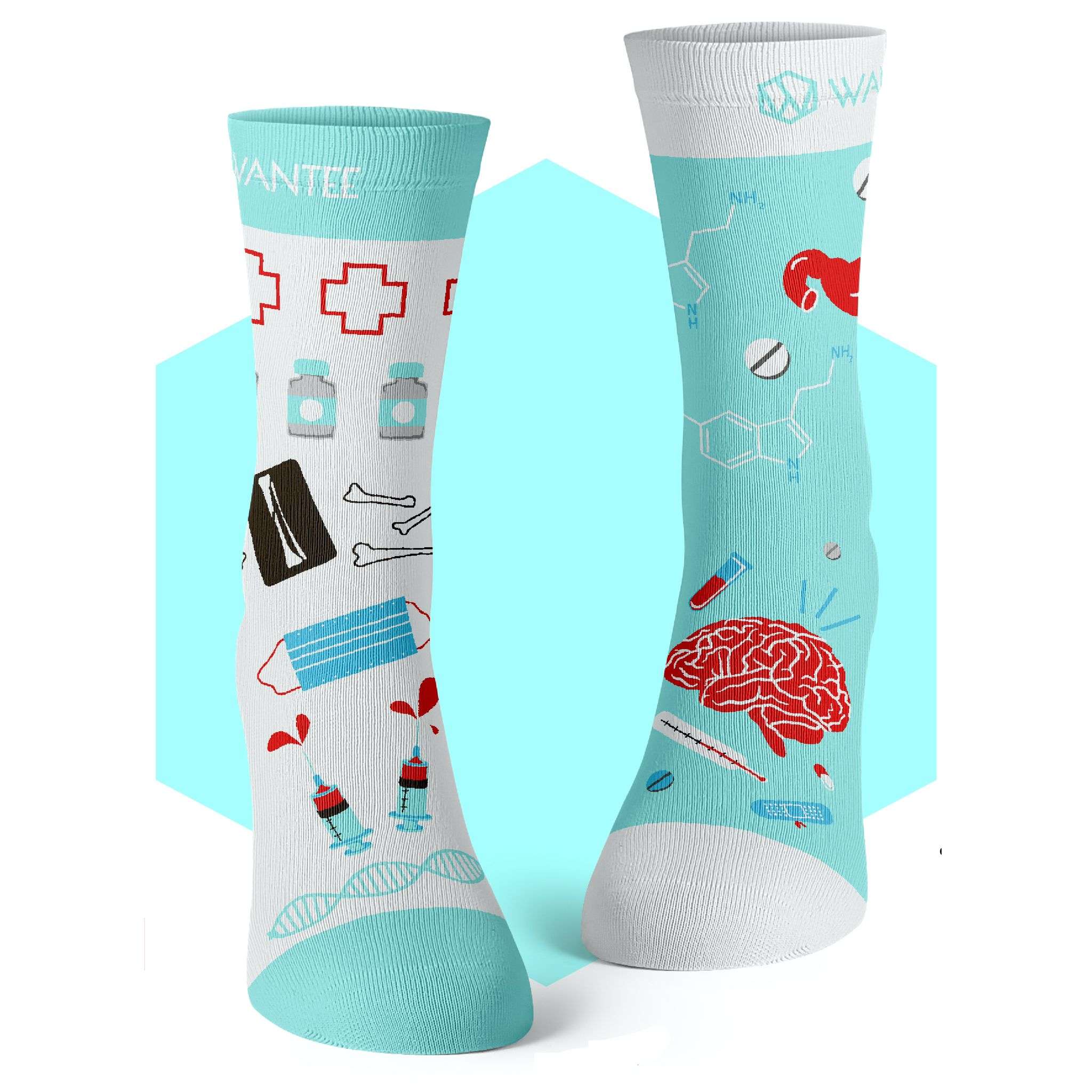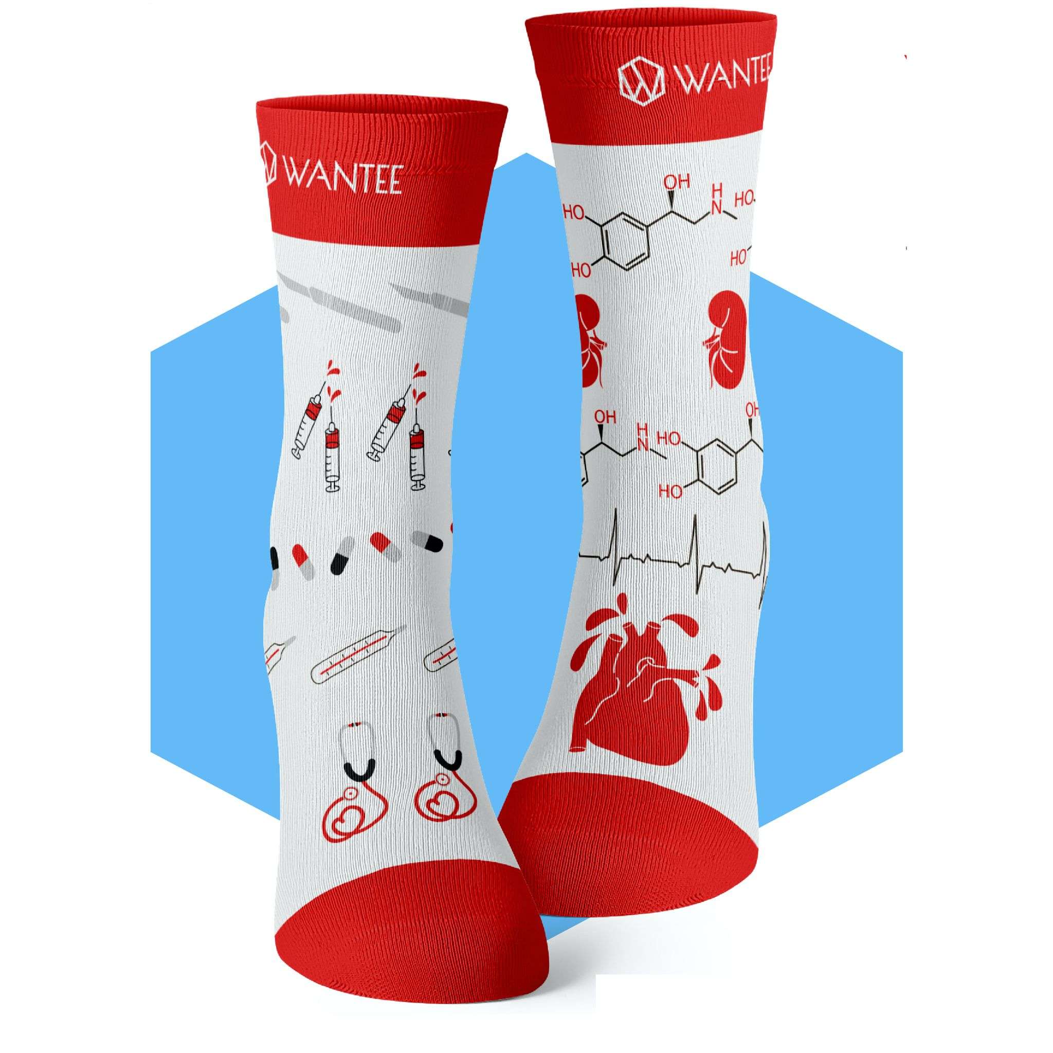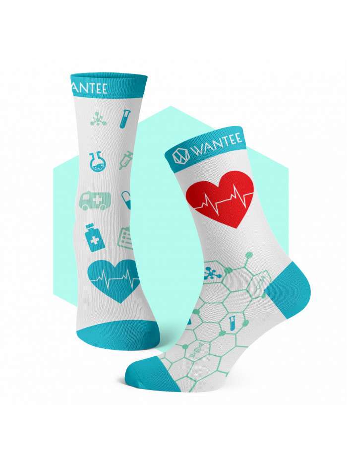 Ponožky Wantee majú aj veselý a tematický dizajn – čo znamená, že nie sú len praktické, ale aj zábavné. Predstav si, že mám ponožky s motívmi stetoskopov, EKG kriviek alebo dokonca s injekciami či srdiečkami! Každý, kto ich uvidí, hneď pochopí, čomu sa venujem a aká je moja vášeň. Navyše, takéto vzory vždy vyčaria úsmev na tvári, čo je fajn nielen pre mňa, ale aj pre pacientov, kolegov a spolužiakov.